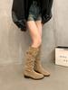 French Apricot Suede Piled Boots Women's Shoes 2025 New Spring and Autumn Winter Long Boots High Heel Khaki