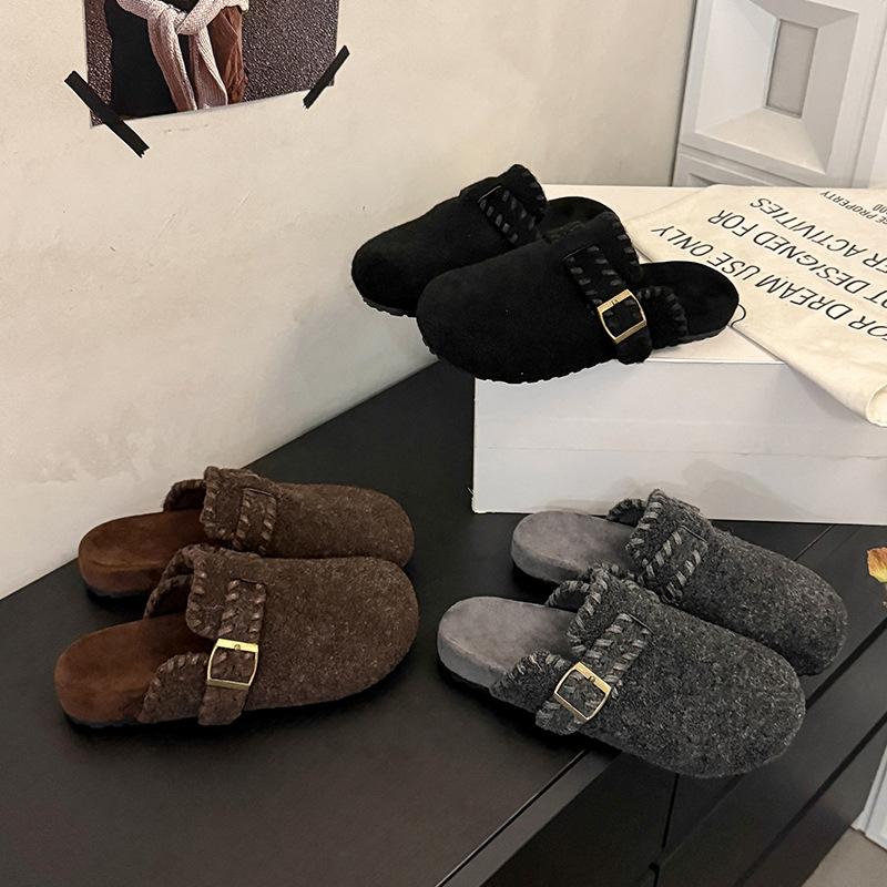 2025 Autumn New French Round Head Flat Bottom Half Slippers Women Wear Versatile Fashion Bag Head Slippers Women's Shoes