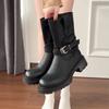 Cowhide Version Wasteland Wind Thick-soled Martin Boots Women's Round Head Autumn and Winter New Knight Boots Retro Belt Buckle Locomotive Short Boots