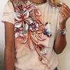 Plus Size Girls Vintage T-shirt Flower Printed Women's T-shirt Gift for Mum Street Loose Short Sleeve T-shirt Tops Summer Shirt