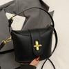 New Popular High-end Lychee Pattern Solid Color Portable Bucket Bag Fashionable Versatile Niche Commuter Style Messenger Women's Bag