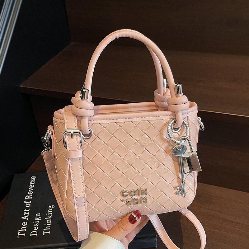 Trendy Design Sense Woven Pattern Portable Bucket Bag Women's Leisure Commuting Niche Personality High Sense Messenger Bag