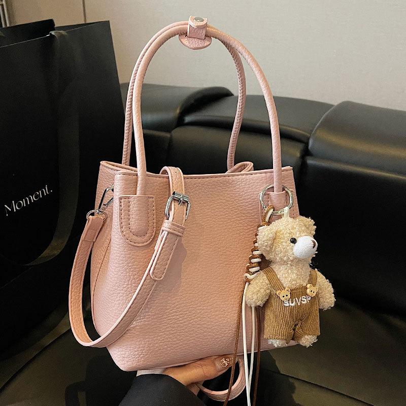 2025 Spring Simple Versatile Fashion Solid Color Portable Bucket Bag Premium Commuter Casual One Shoulder Crossbody Women's Bag