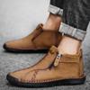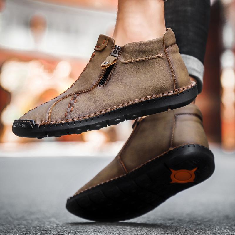 New Microfiber Men's Shoes Outdoor Casual Shoes One-pedal Flat-soled Handmade Leather Shoes Spring High-top Large-size Loafers