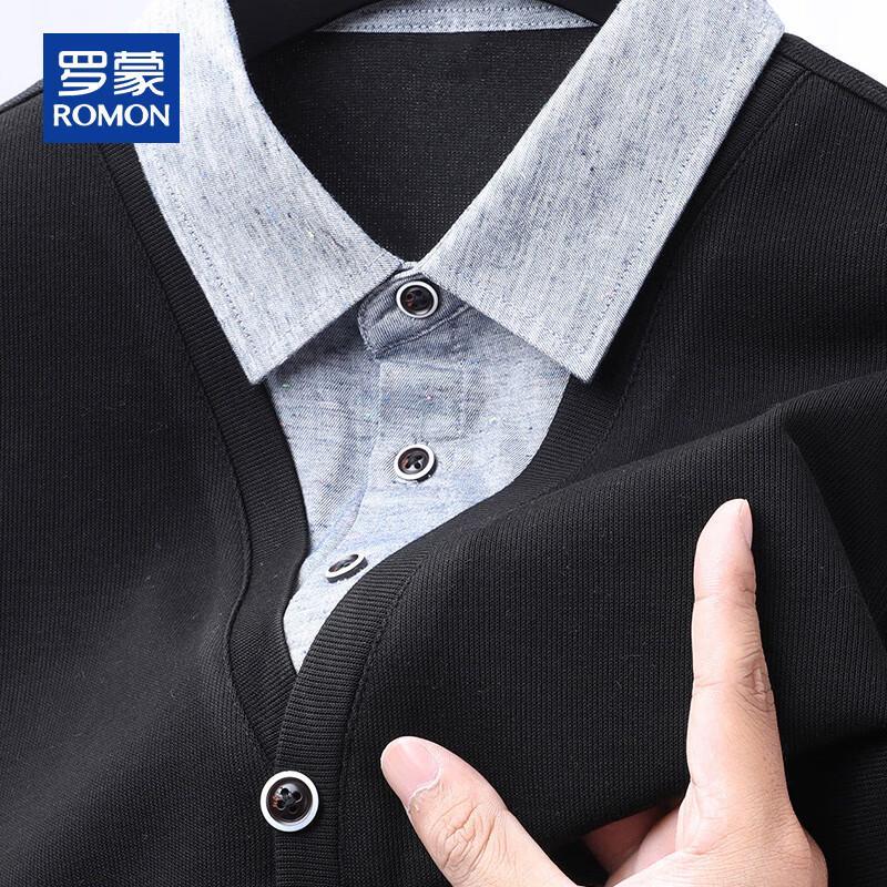 ROMON Men's Faux Two-Piece Knit Polo Sweater