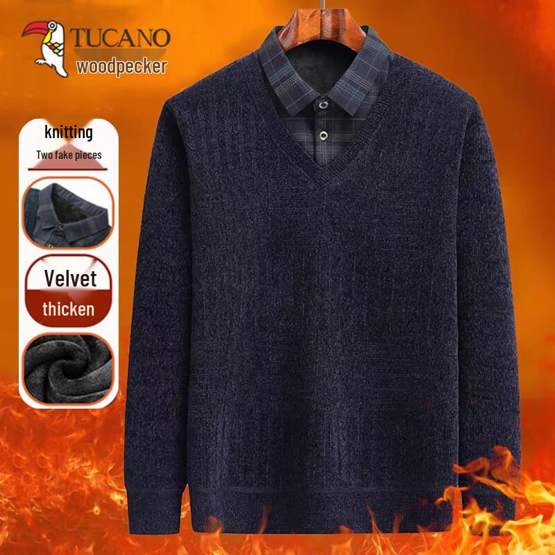 Tucano Men's Faux Two-Piece Plush Thick Knitted Sweater