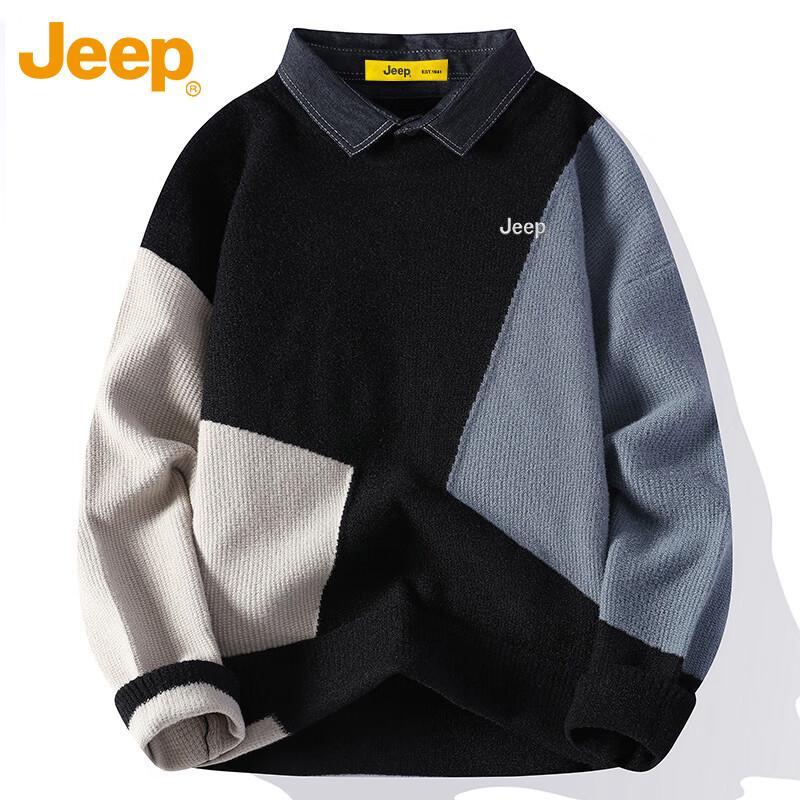 Jeep Men's Faux Two-Piece Knit Sweater with Shirt Collar