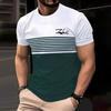 Fashion Striped Printed Short Sleeved T-shirt for Spring and Summer Casual Round Neck T-shirt, Soft and Breathable Men's T-shirt