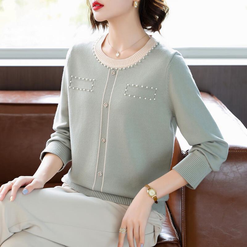 Mid-Aged Women's Casual Round Neck Knit Sweater