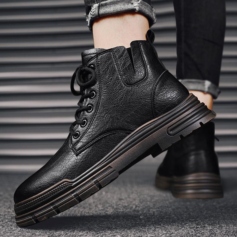 Autumn and Winter High-top Leather Martin Boots, Teenagers Wear Lace-up Retro Tooling Boots, Men's British Wind Motorcycle Boots
