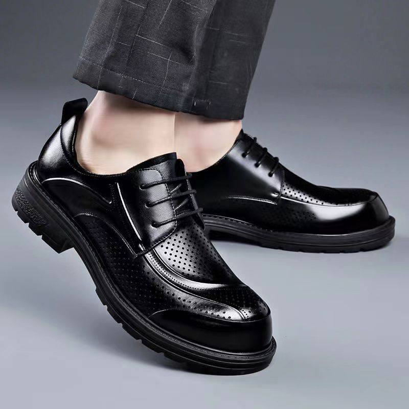 2025 Summer New Hollow Leather Shoes Men's Business Dress Versatile Casual Shoes Breathable Leather Hole Men's Shoes Trend