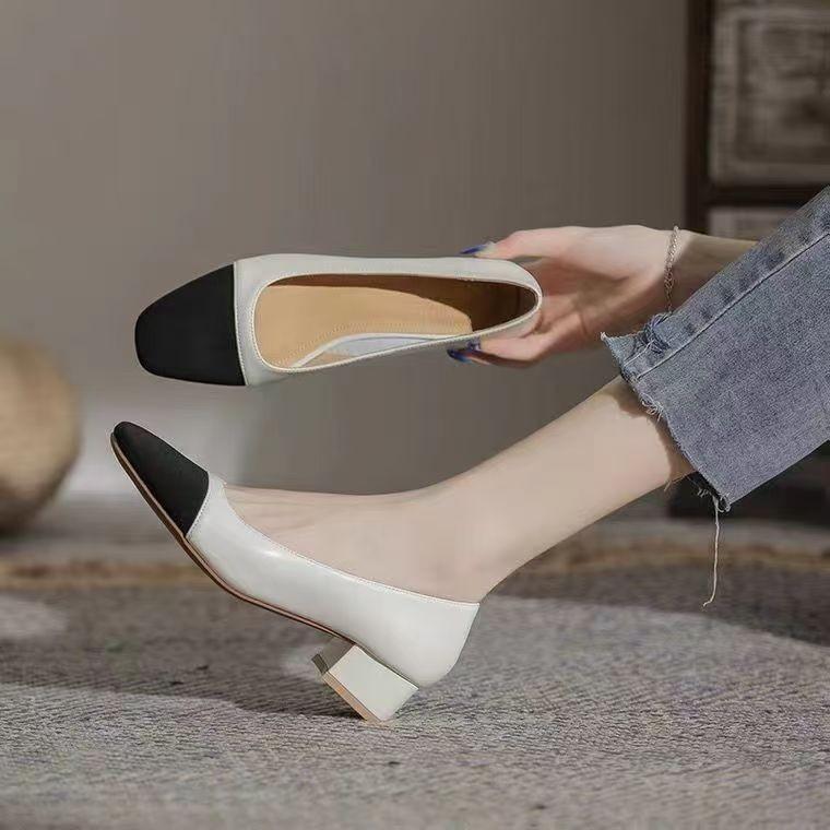 Color Matching Small Fragrant Wind Thick Heel Single Shoes Women's Spring and Autumn 2025 New Middle Heel Comfortable Light Mouth Ladyshoes Fr