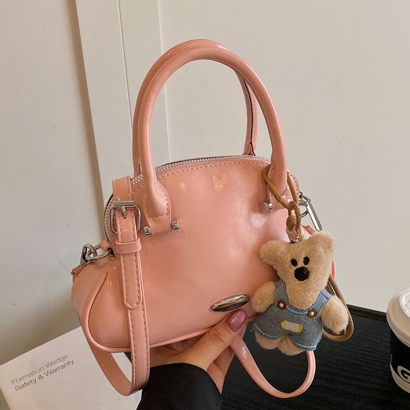 2025 Korean Trend Sweet Toast Shell Bag Temperament Simple Commuter Oil Wax Leather Texture Messenger Bag Women