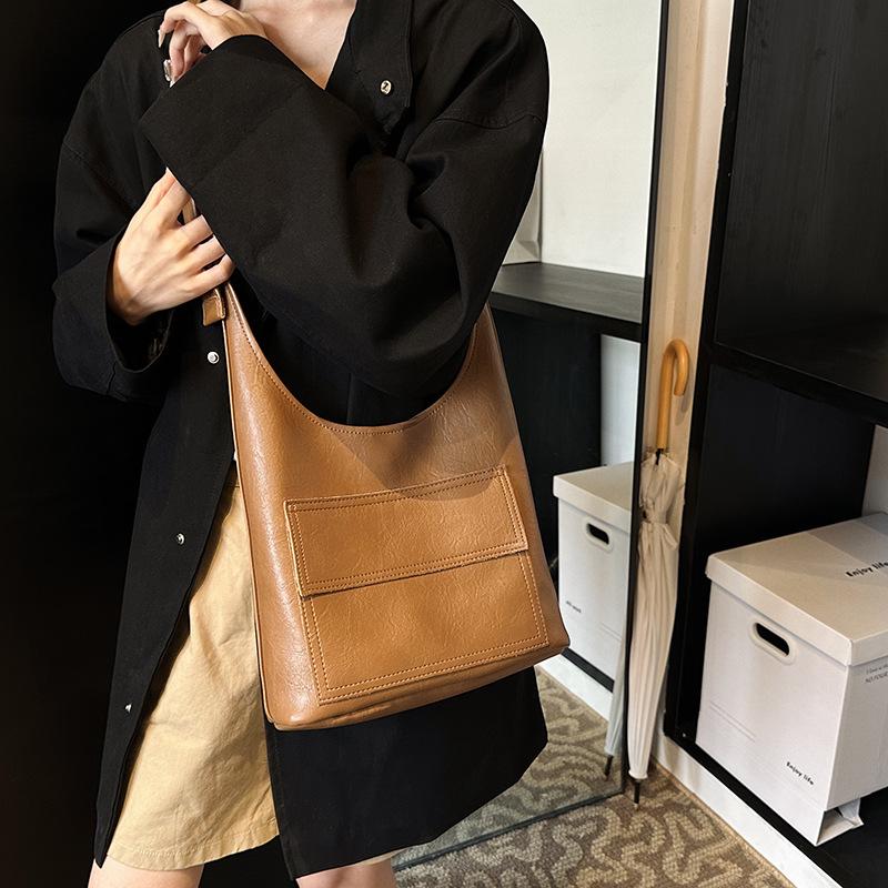 Tote Bag Women's 2025 New High-end Simple Commuter Underarm Bag Large-capacity Crossbody Shoulder Bucket Bag