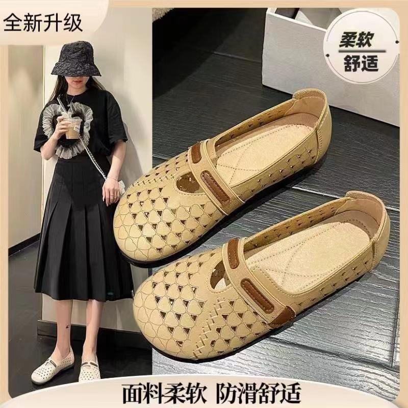 Retro Ethnic Style Hole Hole Single Shoes Soft-soled Women's Shoes 2025 Summer and Autumn New Comfortable and Versatile Hollow One-pedal Sandals