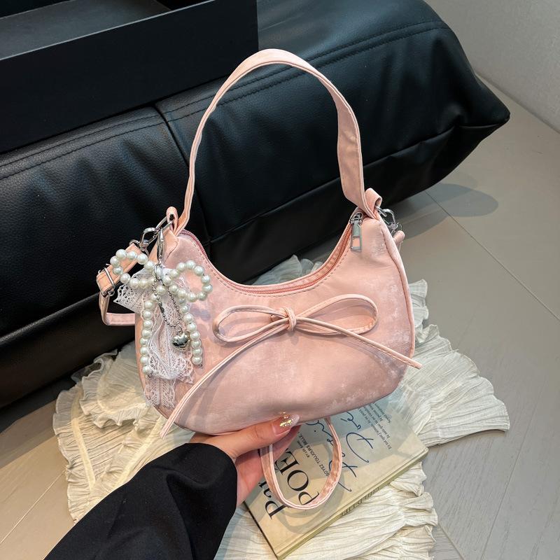 Niche Bow Hand Carry Crescent Moon Bag Women's 2025 New Fashion Simple Shoulder Armpit Bag Shoulder Messenger Bag