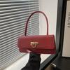 Niche Solid Color Bag Women's 2025 New Trendy Fashion Crocodile Pattern Shoulder Underarm Bag Versatile Portable Baguette Bag