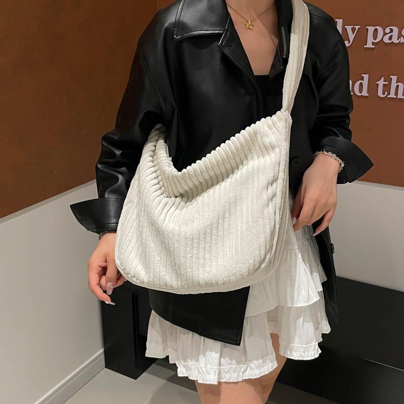 2025 Flannel Big Bag Women's Large-capacity Commuter Tote Bag Simple Autumn Shoulder Oblique Span Bag Corduroy