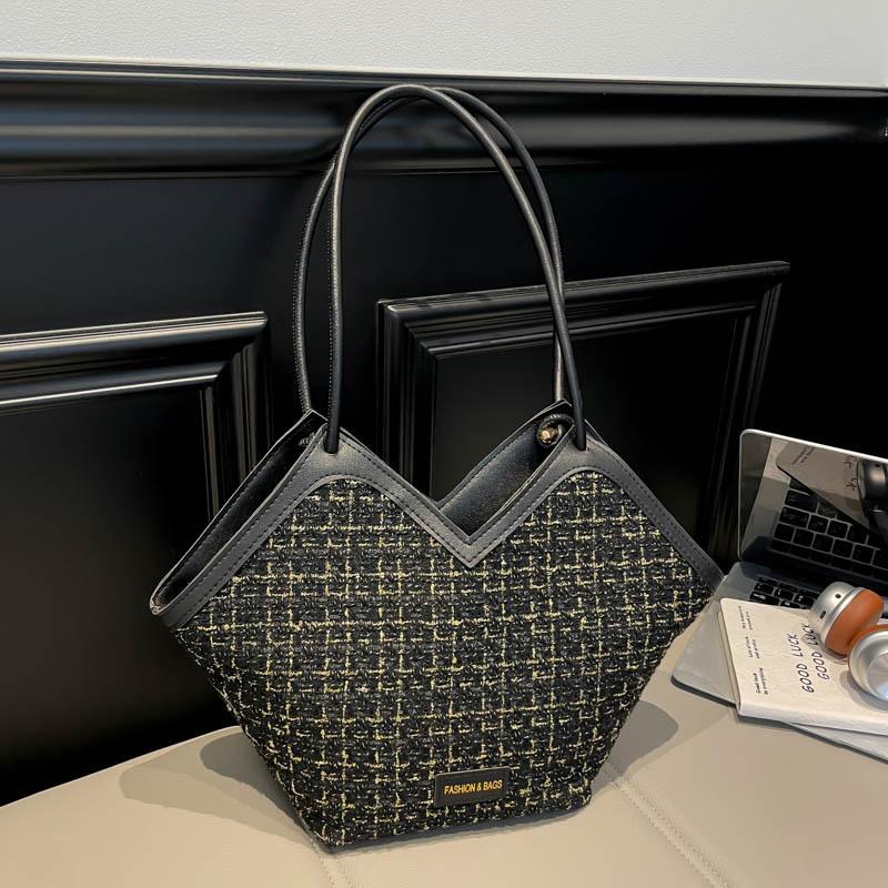 Large Capacity Plaid Bag Women's 2025 New Fashion Retro Shoulder Commuter Bag Women's Texture Versatile Tote Bag Women
