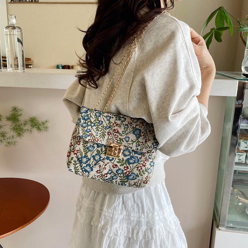 Korean Version Envelope Bag 2025 Summer New Ethnic Style Flower Fashion Clutch Bag Trendy Cool Casual Foreign Style Handbag