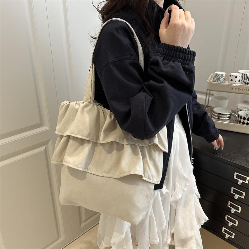2025 Korean Version of the New Skirt Wrinkled Large-capacity Tote Bag Lazy Style Casual Simple Canvas Bag Bag