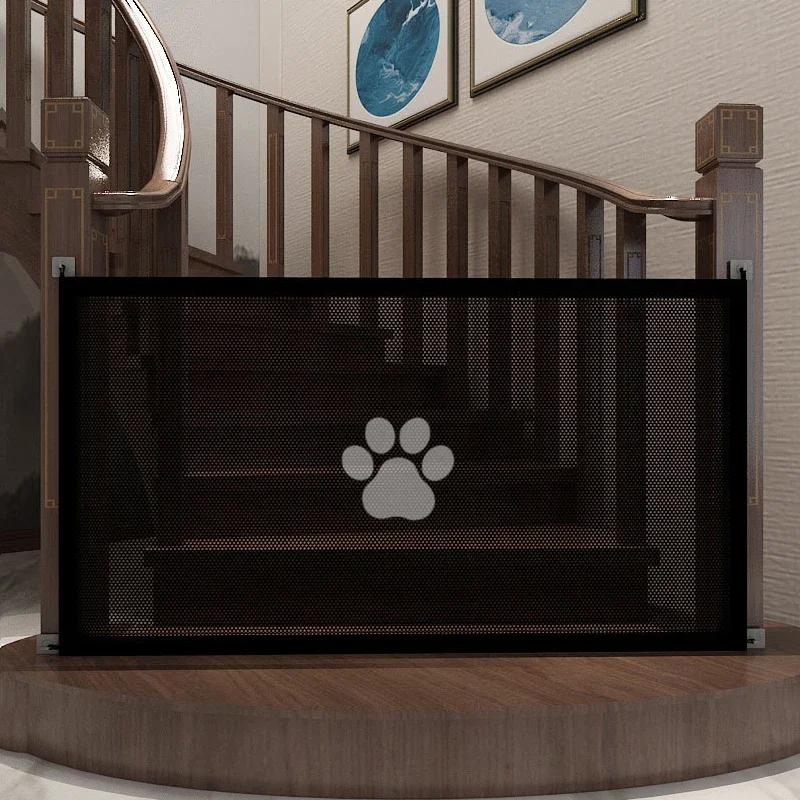 Pet Dog Safety Fence Barrier-Folding Breathable Mesh Isolation Net Stairs Gate Playpen for Indoor Outdoor Pet Restriction Needs