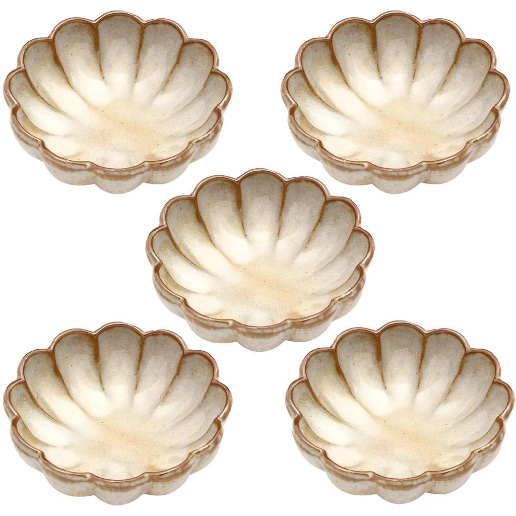 Mino Ware Gohonte Small 11cm Set of Made In Product "Kato Kenji" Chrysanthemum-shaped Three-legged Bowl/Plate, Approx. Diameter, 5, Japan, Code