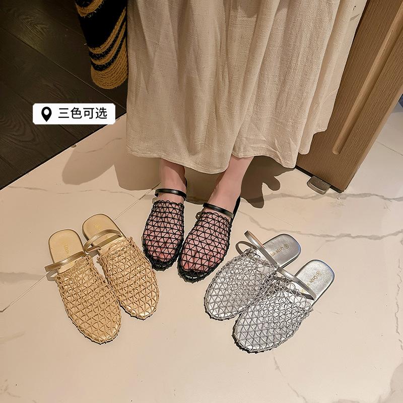 Grape Mother Summer New Hollow Niche Design Outer Wear One Word with Bag Head Flat Bottom Cool Slippers Women