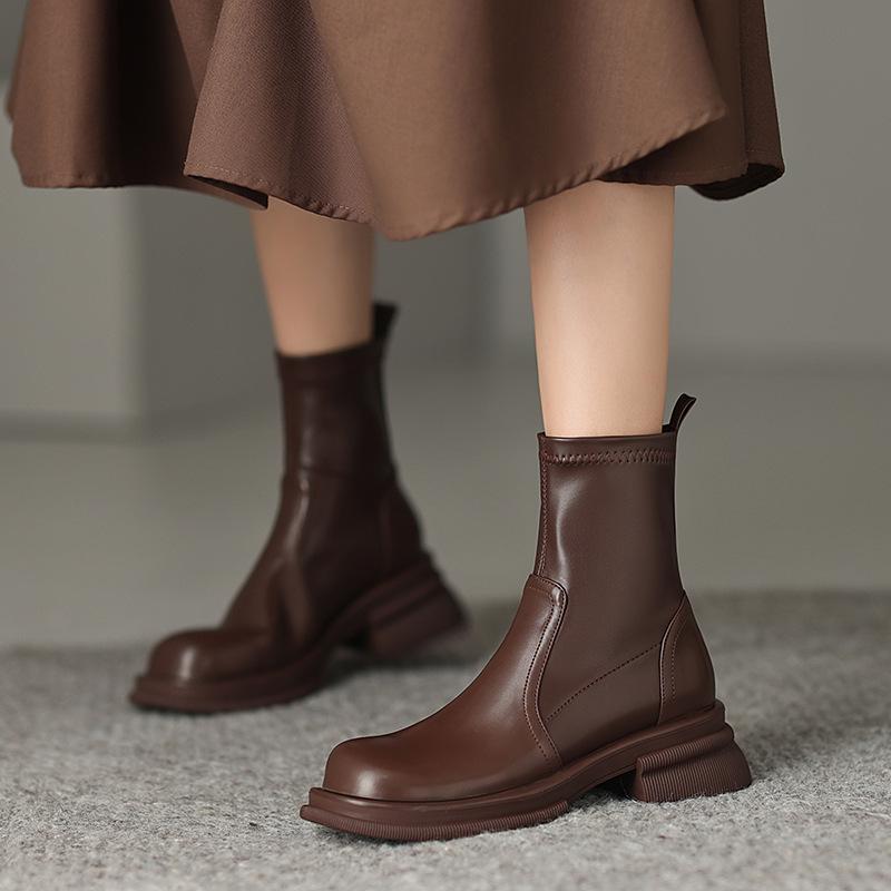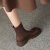 Korean Version of Round-toed Martin Boots for Women's New Thick-soled Non-slip Large-size Women's Boots, Low-heeled Comfortable Leather Boots, Autumn