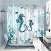 Octopus Shower Curtain Nautical Ocean Sea Turtle Beach Coastal Blue Fish Seashell Jellyfish Fabric Bath Curtains Bathroom Decor