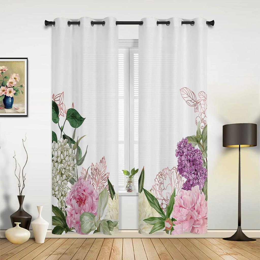 Peonies Roses Flower White Curtains for Bedroom Living Room Drapes Kitchen Children's Room Window Curtain Modern Home Decor