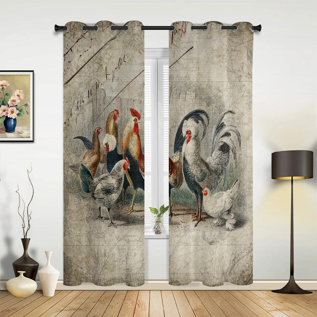 Farm Rooster Chicken Retro Illustration Window Curtains Home Decor Living Room Curtains Kid's Room Cortinas For Kitchen Bedroom