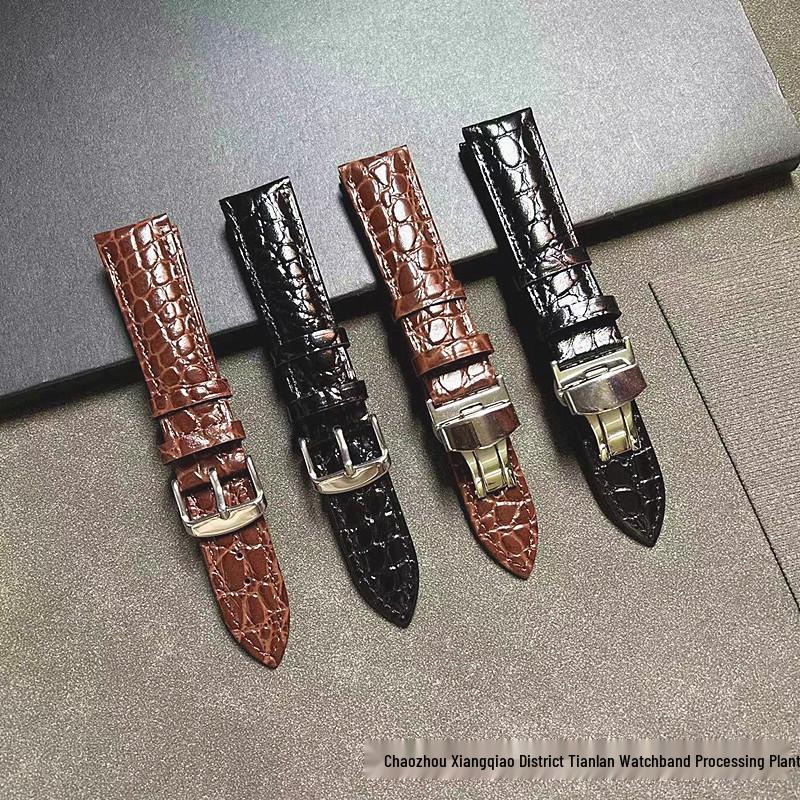 Men's Alligator Pattern Leather Watch Strap, Pin & Butterfly Buckles - Women's Accessories In Stock