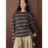 Johnature Autumn Winter Korean-style Simple Lazy Color-block Stripe Round Neck T-shirt Loose Comfortable Top For Women