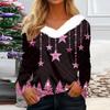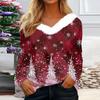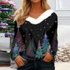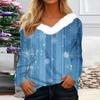 Women's Fashion Casual Long Sleeve Christmas Printed Plush Collar V-Neck Top