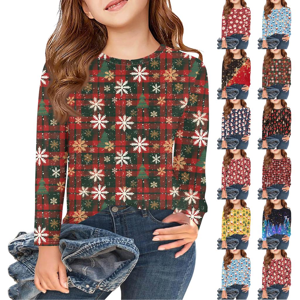 Christmas Day Girls Long Sleeve T Shirts Kids Fall Tops Crewneck Printed Basic Tees