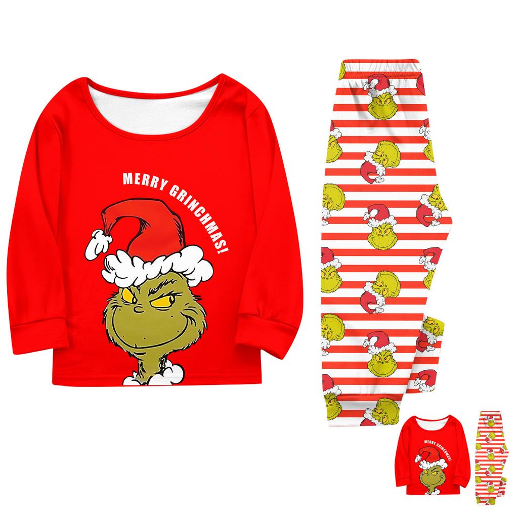 Print Cute Family Set Pajamas, Home Clothes, Family Set Long Sleeve Top Pants Set