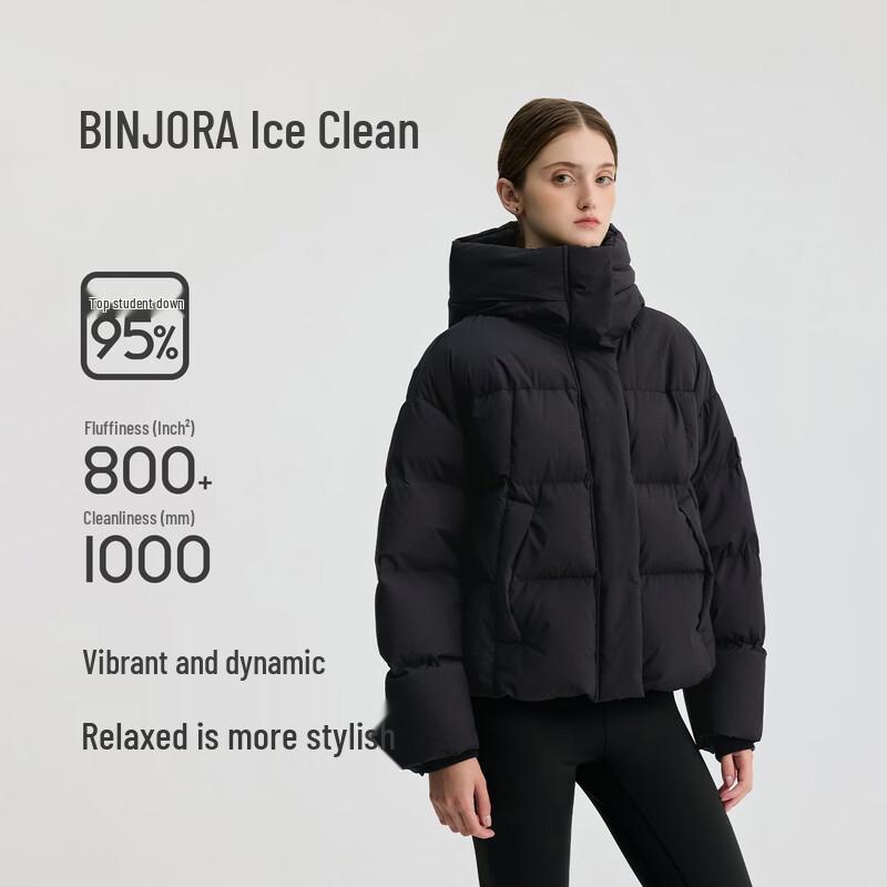 BINJORA Women's Short Hooded 95% White Duck Down Puffer Jacket J5400DR31