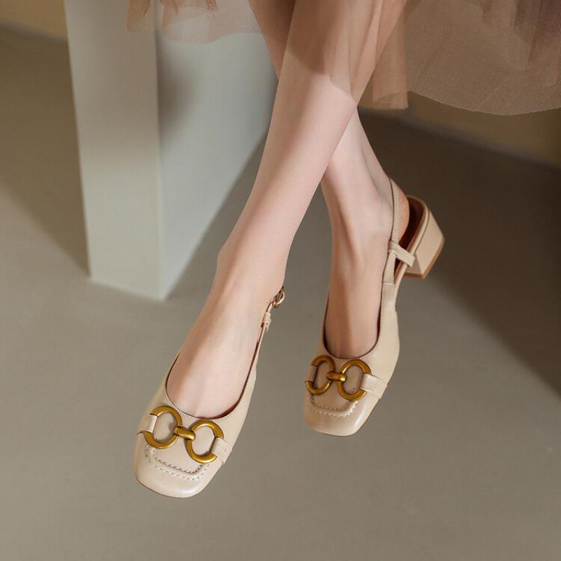 Comfortable and Versatile Simple Low-heeled Single Shoes French Bag Head Sandals Women's Spring New Back Empty Thick-heeled Mary Jane Shoes