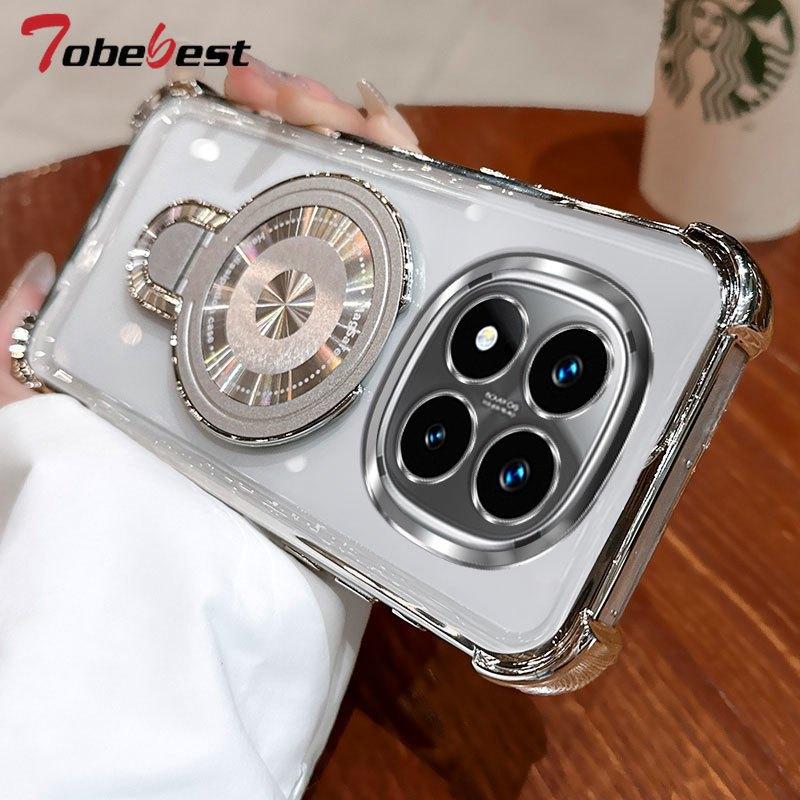 Clear Shockproof Plating Magnetic Magsafe Bracket Case for Xiaomi Redmi Note 14 15 14S 13 13R 12 11 10 9 Pro Plus 4G 5G Cover