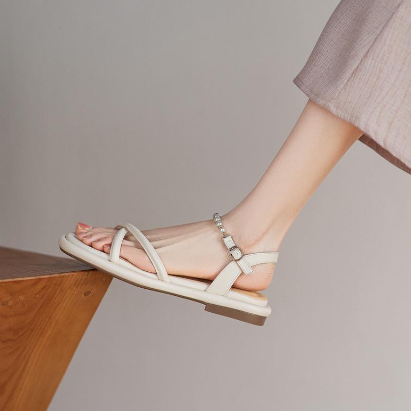 Summer Women's Flat-soled Sandals New Rear Empty Word with Sandals Rubber Soft Sole Large Size Shoes Solid Color Round Head Korean Version