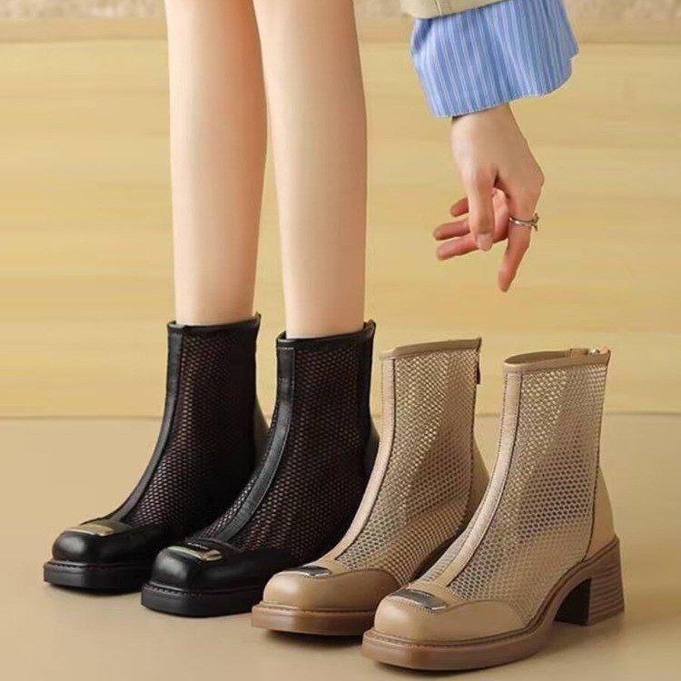 Retro Martin Boots Women's Summer Thin New Thick Heel Mesh Hollow Sandals Breathable Soft Sole Short Boots Cool Boots