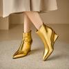 Autumn and Winter Low Boots Large Size Shoes Popular Size 46 Slope Heel Pointed European and American High Heels Rubber Soft Sole Women's Boots