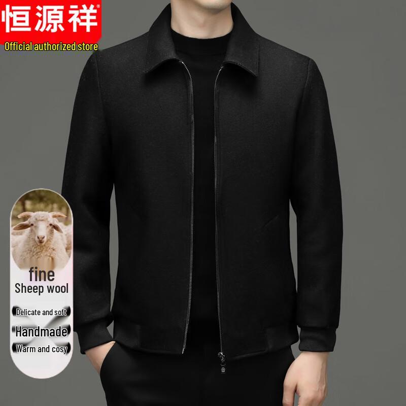 Hengyuanxiang Men's Autumn/Winter Wool Blend Turn-Down Collar Jacket