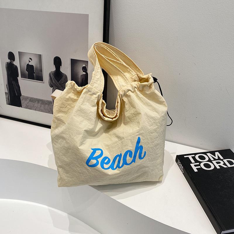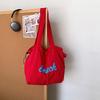 Casual Letter Bag Women's 2025 New Washed Cloth Bag Shoulder Large Capacity Tote Bag College Student Class Commuter Bag