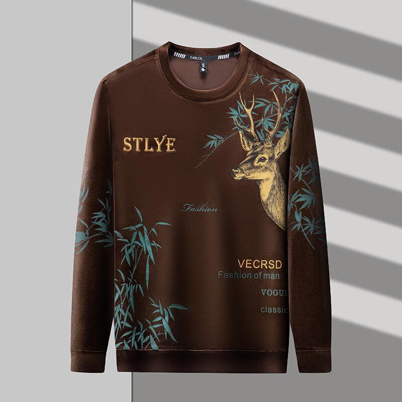 Firstview Men's Urban Casual Digital Print Velvet Long Sleeve Sweatshirt