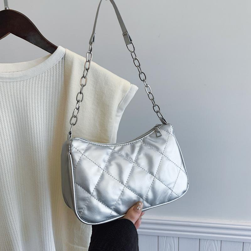 Textured Diamond On the New Casual 2025 Spring New Solid Color Fashion Trend Foreign Style Portable Underarm Shoulder Women's Bag