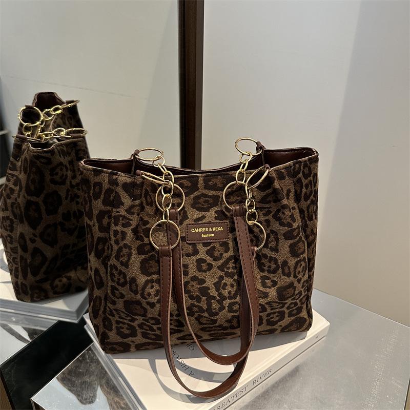 2025 Autumn New Korean Version Large-capacity Tote Bag Women's Fashion Simple Leopard Print Commuter Temperament Shoulder Armpit Bag