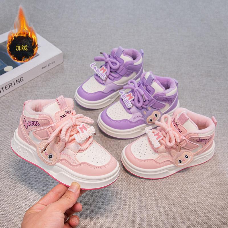 Girls Cartoon Sneakers Velvet Two Cotton Shoes 2025 Autumn and Winter New Middle-aged and Older Children's Casual Shoes Cute Children's Board Shoes