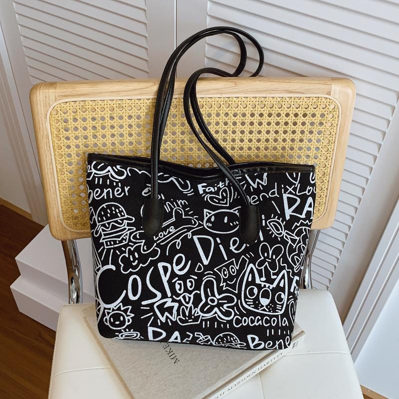 Graffiti Tote Bag Niche Design Handheld Cloth Bag Women's Bag Autumn New Casual Shoulder Bag Large Capacity Underarm Bag